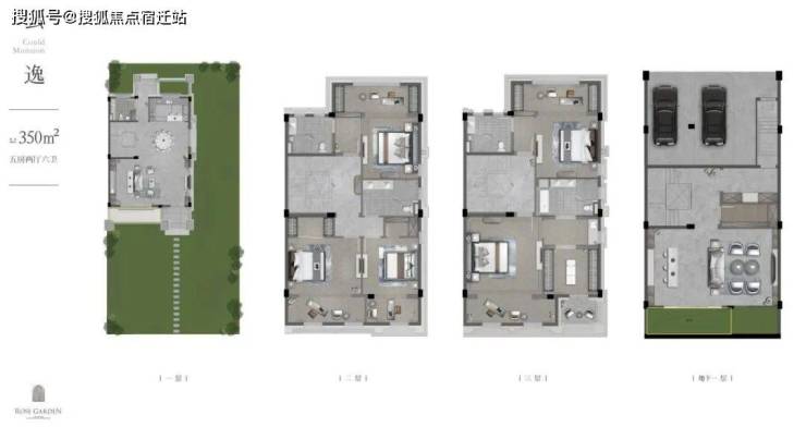 以建面约350㎡边套为例,一楼三面为花园环绕,室内空间完全留给客餐厅与厨房;二楼则是尺度阔绰的三间套房,确保整个家的动静区分离。