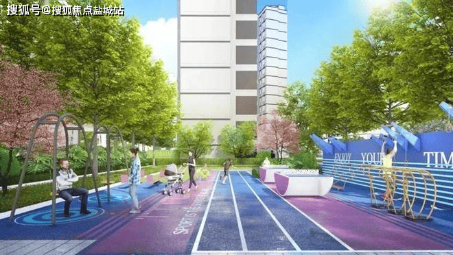 社区内还规划了全龄乐活空间,有羽毛球场、约750米的健康跑道、多功能活动区,为儿童和老人分别打造了儿童游乐场所、健身康体中心。