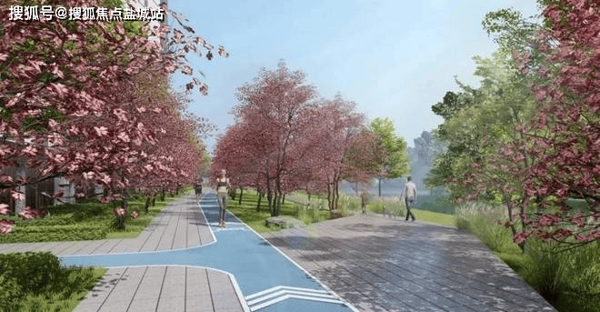 社区北面还特别打造了滨水公园景观大道、樱花休闲步道、600米的健康跑道以及滨水观景平台,让生活回归本真,美好生活从步入社区那一刻开始。