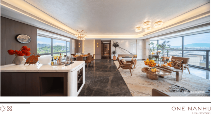 励欧·南湖一号最后一栋建面约263㎡临江大平层,拥有约21.6米的无界大面宽,如同为居者生活打造了一个超广角镜头,把万般风华尽收眼底,晨起看旭日东升,日暮看晚霞漫天,夜晚看星河璀璨,俯瞰三馆闽南风韵,近揽湖光山色,远眺九龙江波光浩淼……每一面风景都是生活的巨幕宽境。