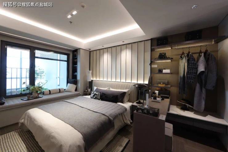 国誉府这个98㎡是飞机户型,本身比动静分离的三房空间利用率要高一些,加上又是纯洋房,天然的高得房率,因此这个主卧尺度感非常好,比一般户型主卧更大、更方正,主卧床头背景墙也是交付标准。