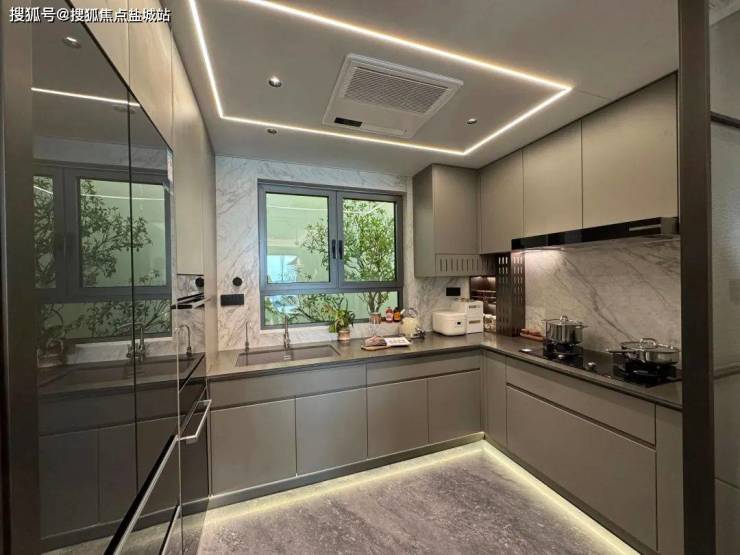 厨电采用的是全套博世——双开门冰箱、油烟机、燃气灶、洗碗机、蒸烤一体机、暖碟机。还有3M末端直饮水,弗兰卡水槽+龙头,特别是这个大金厨房空调,厨房专用的防油烟的款,造价比寻常空调更贵。