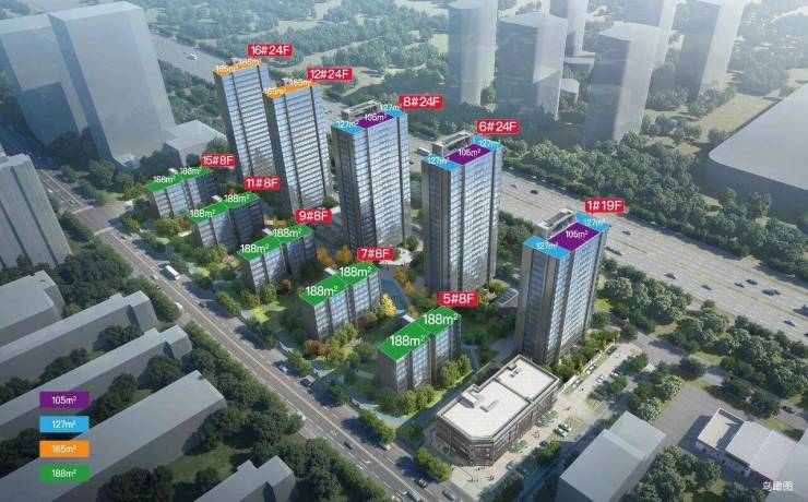 · 户型建面:约105㎡、127㎡、165㎡、188㎡