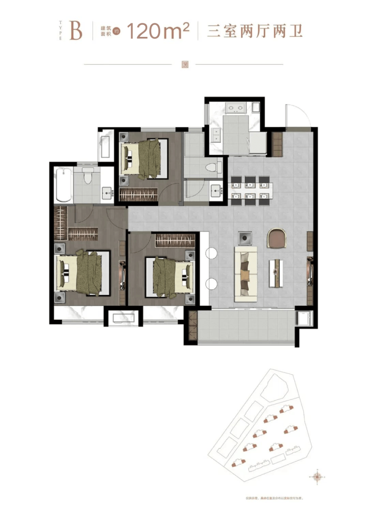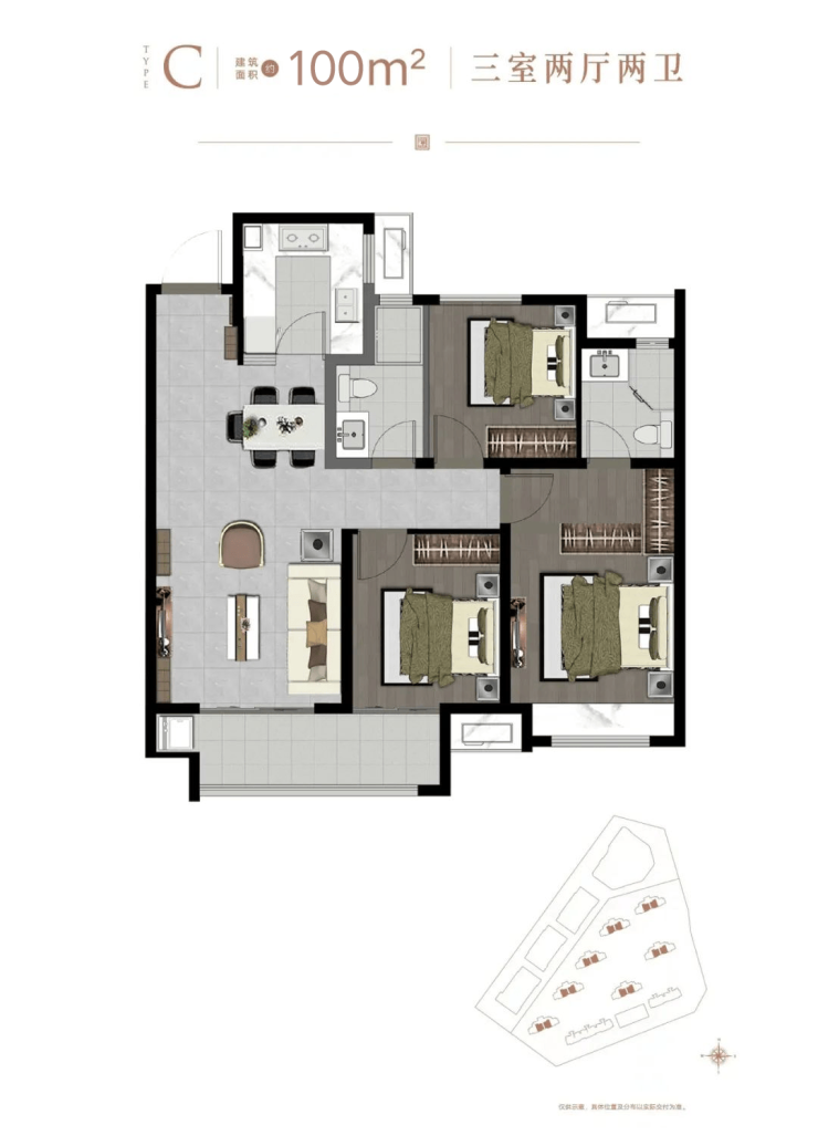 好产品没有捷径可走,品质是一切的基石。宁熙澜苑作为区域内少数百平内可做到三房双卫的住宅产品,以大面宽、双厅、双阳台、双卫、主卧套房的设计,在有限的空间内,让空间使用率与舒适度实现最大化,多种生活场景随心切换,轻松演绎诗情画意的理想生活。