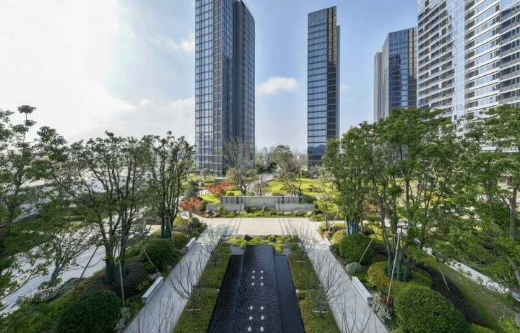 除了立面之美,金茂·长东府在园林景观上也是大手笔,邀请业界设计大咖、GAD合伙人张徽大师操刀,以看得见的华丽场景力,打造度假感十足的景观归家动线。