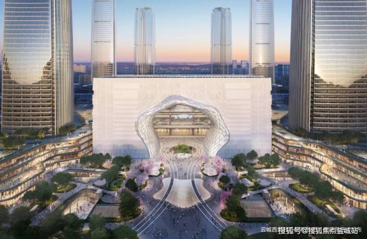 ② 云城西站TOD:分为南北两大综合体,地上总建筑面积约130万方,规划办公,商业,酒店,剧院,会议,云端观景,文化展示等功能。