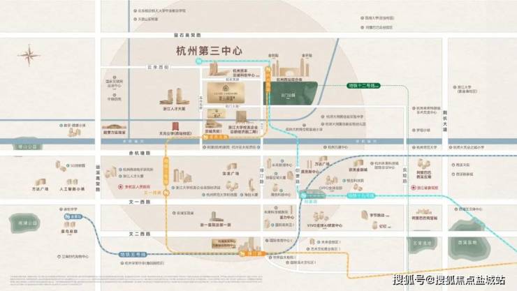 3条轨交线:近距地铁3号线/12号线(在建)/19号线,极速通达杭州各大核心城区