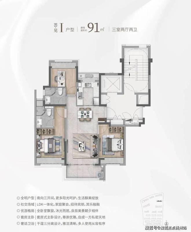 ③建面约101㎡H户型:三面采光,全能景观王炸边厅户型!同样是3房2卫的配置,功能性与舒适度兼具。该户型惊艳的地方在于大尺度的景观边厅设计,搭配超大阳台,营造IMAX级别的客厅景观面,极具阔绰感! 全卧室飘窗、干湿三分离、U字型厨房设计,同样的魔鬼细节!