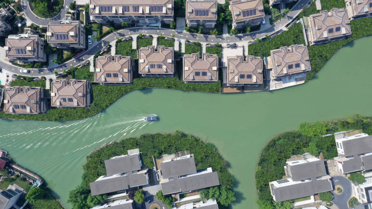 以内外双湖优势,巧妙将每栋别墅均匀分布在岛屿之上,让每栋别墅院落与内湖相连,内湖与太湖紧密联通。