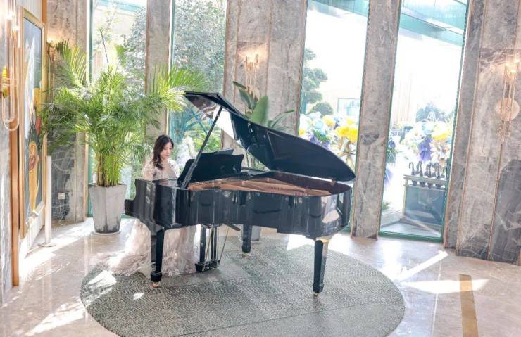 在悠扬的钢琴声中,睿铂庭咖啡吧里错落摆放着精致的点心,供来宾们自行享用。
