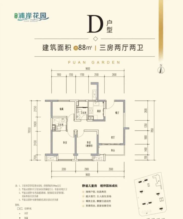 项目建面约88㎡的面积,却能有3房2卫的空间,这在市面上也是少有的。户型规划合理,将空间利用到了极致。超大的客厅显得房间十分宽敞,这里是生活的交流场;卧室的飘窗、宽景阳台,将社区景色尽收眼底;再加上尊贵的主卧、儿童房……让生活惬意又舒适。