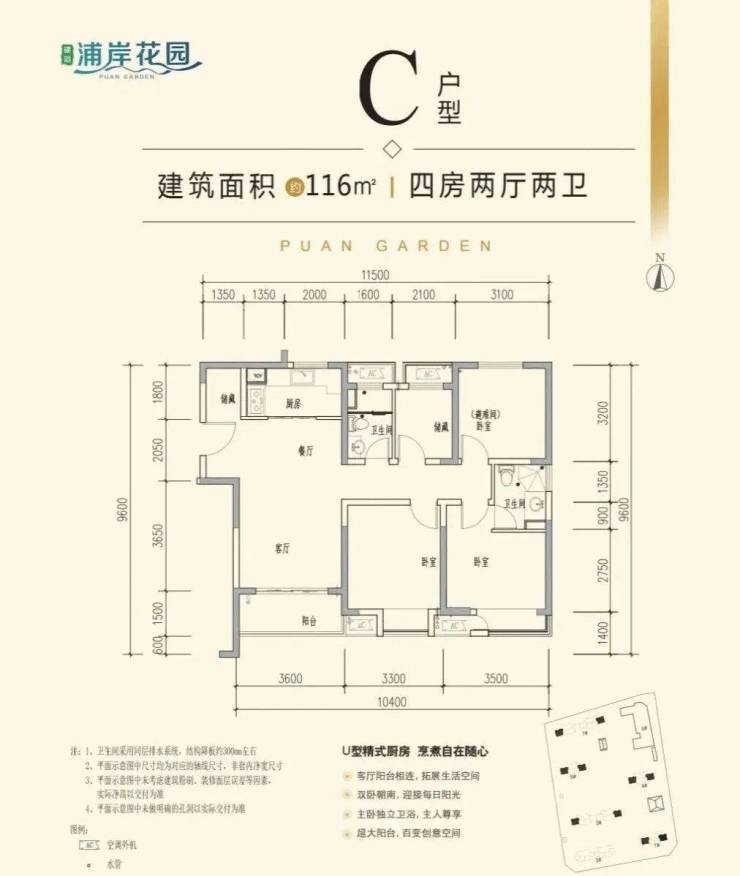 项目建面约116㎡户型,4房2厅2卫,是市面上十分受追捧的大四房。客厅与阳台相连,大大拓展了生活空间;双卧朝南、超大阳台,让阳光随时入室、通透明亮;拥有独立卫浴的主卧、U型厨房等都提升了生活的品质和舒适度。
