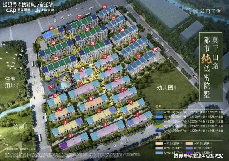实景鸟瞰图(一共:26幢,11幢叠墅、15幢排屋)