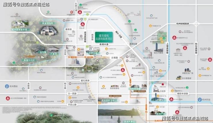 项目西邻良渚文化村(大屋顶、玉鸟集旁),占据板块内优越位置,坐拥水到渠成的醇熟生活配套,出门就是繁华场,近距离享受良渚文化村所有内部、外部配套。