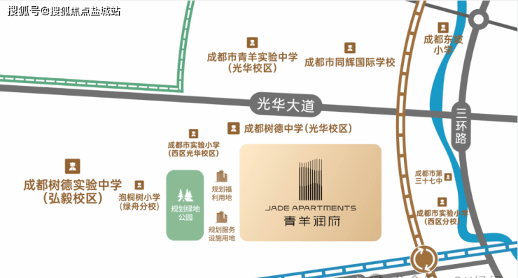 以项目为原点,半径约2km内覆盖7所全龄段优质学府资源。