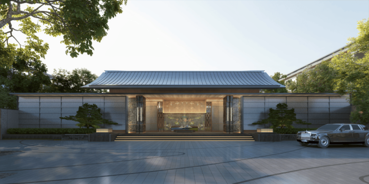 设计团队采用“取意去形”的设计理念,建筑立面多由纤细轻盈的线条元素,形成独具一格的美感,并以现代金属线条、金属格栅、玻璃栏板等,转译宋代建筑的精髓,将线条感与棱骨感凸显,丰富光影关系,加强建筑质感表达。