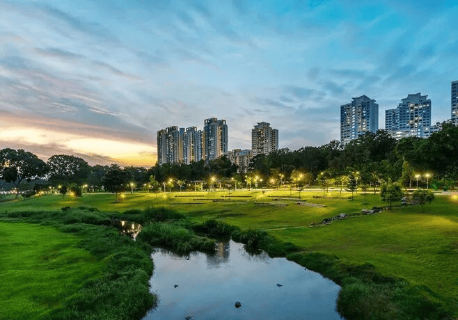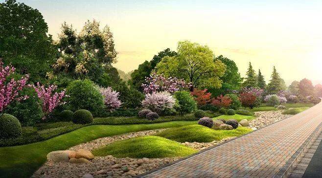 公园景观四季不同,每个季节都有能保证树木常青、繁花似锦,真正做到了把家安在公园里。