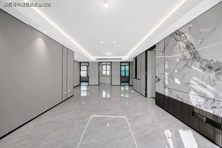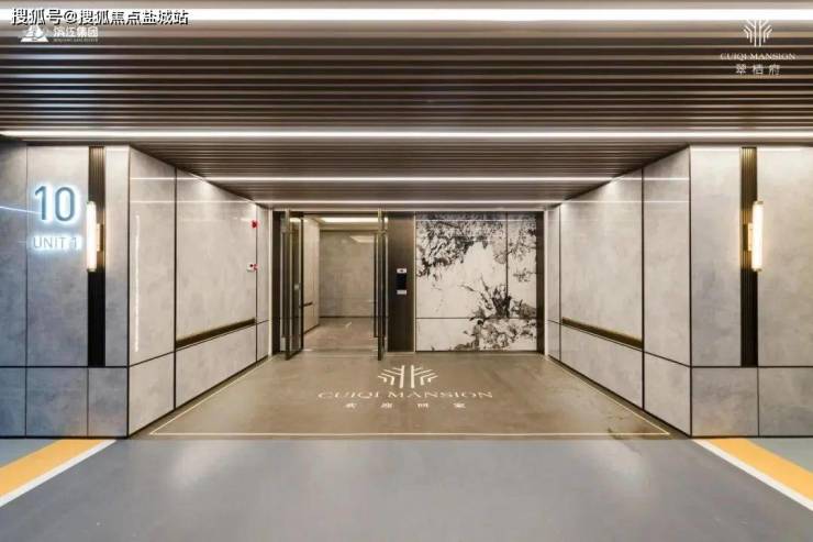 地下车库也让你眼见为实,地面划线是灰色、灰绿与橘黄的色调搭配,给人一种宁静感。车库入户大厅的界面感十足,一幅岩板抽象画,搭配暗金色的推门,折中的秩序感油然而生。看完翠栖府的实景样板区,一种久违的惊艳之感,自然而然地在心中震荡。