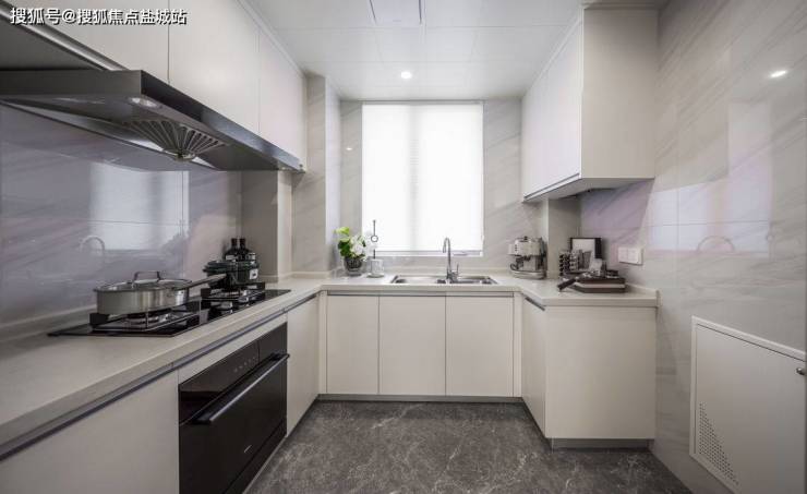 约128㎡边套尺度更宽裕,三开间朝南约10.7米,北面两个房间很方正,U厨房的操作面宽达到了2.7米,餐厅面宽也很“豪横”。