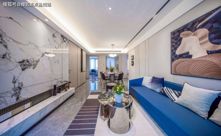 客厅双面背景墙:现在很多项目,连电视机背景墙都不做的情况下,翠栖府出人意料地做到“双背景墙”——电视机背景墙+沙发背景墙,开创“双背景墙”时代,其中电视机背景墙是大片岩板上墙,而沙发背景墙则是硬包的形式。提的一说的还有,主卧的背景墙,翠栖府这次也是“交付标准”。