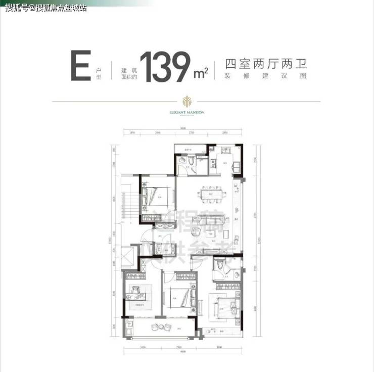 139㎡也是三开间卧室朝南,1个卧室朝北,餐客厅竖向安置,属于当下最优化的大户型设计了。