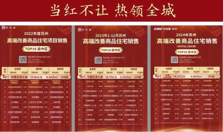 中建·太泽之星|阅湖&御湖,作为吴中人气红盘TOP1,蝉联2022-2024年度吴中区高端改善商品住宅销售三冠王🏆(总价段500万以上),荣膺2024年度苏州市区住宅销售金额面积双榜单前五,荣膺2024年度吴中太湖新城住宅销售金额榜TOP1!