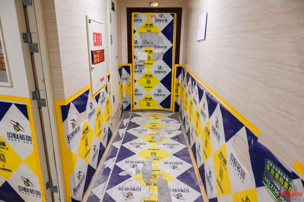 11 月 5 日,红星新闻记者到达该小区,从小区内部进入 1 栋 2 单元 2 楼,记者看到,2 楼总共有 5 户,其中,位于同一侧的 2 号房至 4 号房均铺上同一装修品牌的贴纸,显示该房屋正在装修。而据其他业主介绍,涉事业主所购买的一楼商铺也位于住宅的同一侧,但位于小区外部,无法从小区内部进入,需从小区大门出去后再从外部进入。