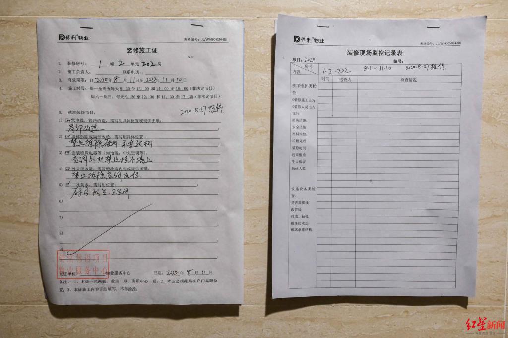 那么,对于该业主的行为,小区物业是否知情?据小区业主介绍,事发后,物业工作人员已在业主群内发布了关于此事的情况说明。说明中提到,早在 2017 年,物业中心就发现该户业主在破坏楼板,欲从楼下商铺直接安装楼梯进入室内,发现此问题后,物业就发了整改通知书停工,因此该业主一直处于停工空置未装修状态。由于前几日出现渗水问题,才让该业主到项目配合处理。物业工作人员也向红星新闻记者证实了此事。