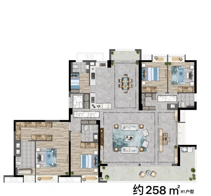 面积:约104-258㎡