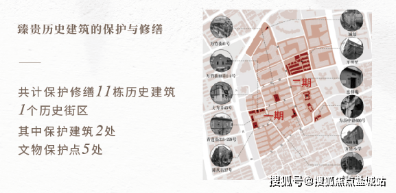 露香园境内拥有共计11栋保护修缮的历史建筑、1个历史街区,其中保护建筑两处、文物保护点5处。
