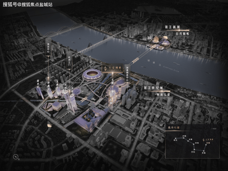 正如在陆家嘴观十里洋场,能看到上海三十多年间的风云际会,在七星潮鸣瞰奥体,也能望见杭州从西湖时代到钱塘江时代的奔腾进程。