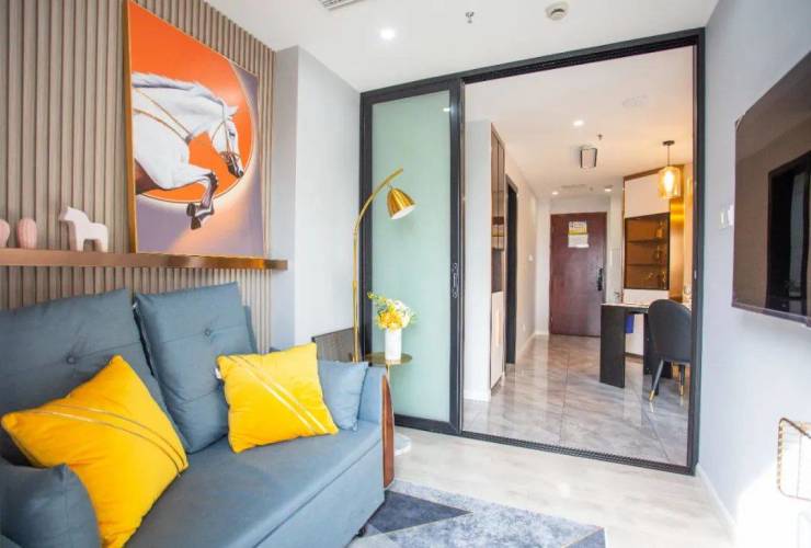 本项目位于住宅密集板块,生活氛围浓厚,周边住宅均价9-12万/㎡,板块内40-70㎡左右的房源在链家上租金在5000-8500元左右,仅供参考。