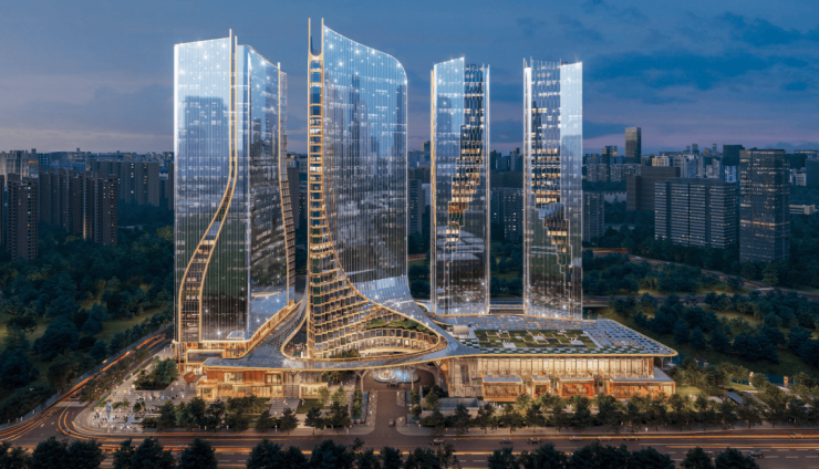 四栋塔楼围合成“欢迎姿态”,既是建筑艺术的极致展现,也是向城市开放的空间美学表达。