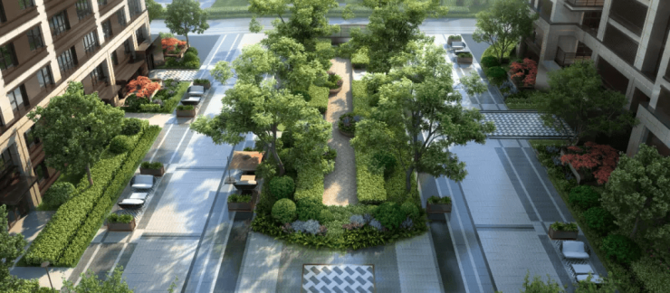 西侧正对着芷江绿地及共和新路公共绿地(规划中),可谓内外双园配置。