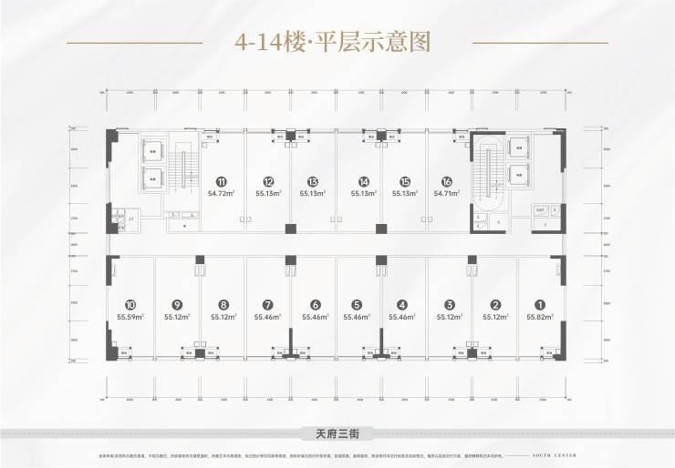 4-14F:在售的4.9米水电气三通的酒店服务式高端公寓,公寓为4梯16户,舒居55㎡,为目前高新区唯一的稀缺物业,绝版物业;