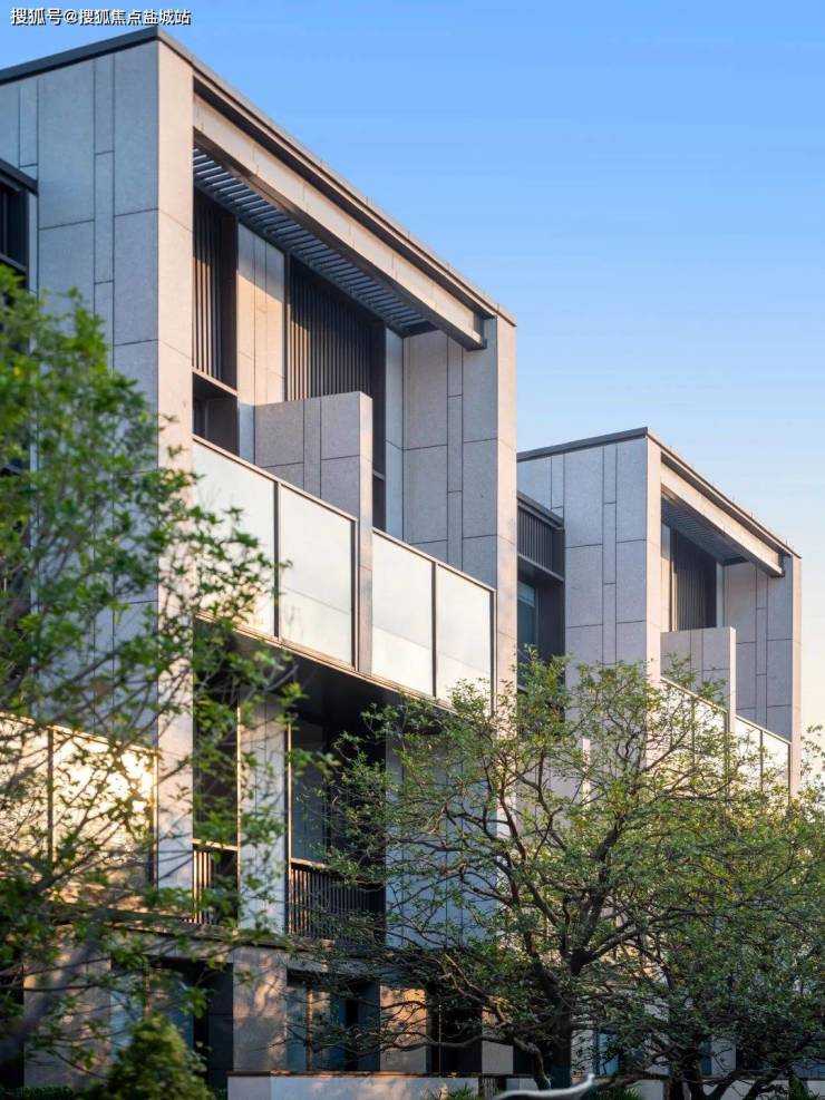 项目品质也十分耐打,立面主体采用素白色花岗岩石材和相同效果的仿石漆,搭配金属线条勾勒,营造出简约而不失高端的建筑风格。