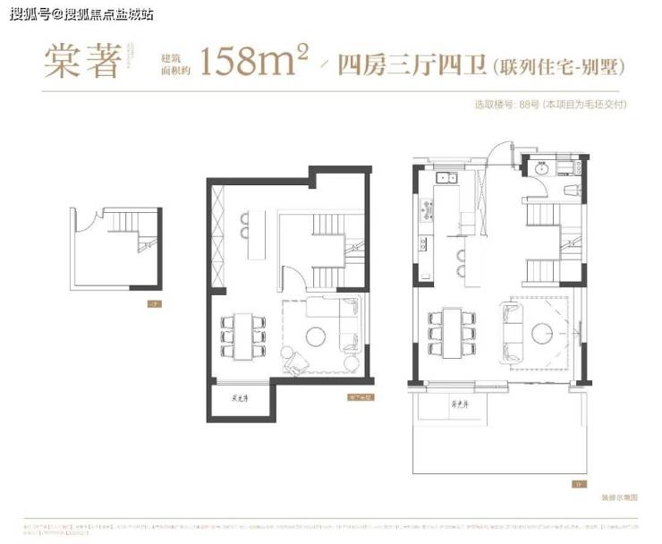 联排别墅主打约158-165㎡地上三层产品,带露台和相对独立的使用景观分区。