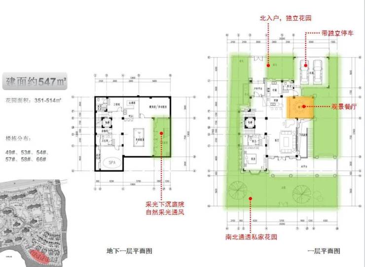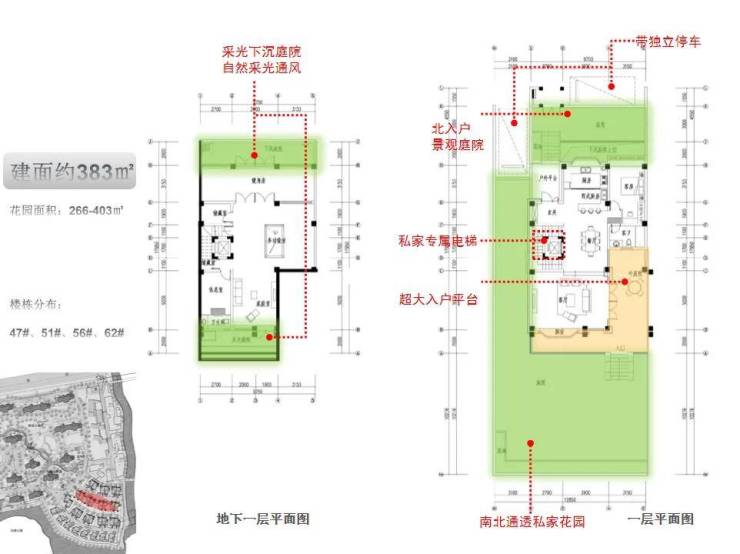 一楼:均采用南北双入户,带南北通透的连体超大花园;北向