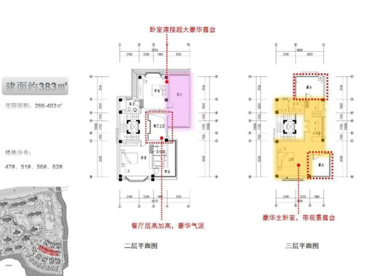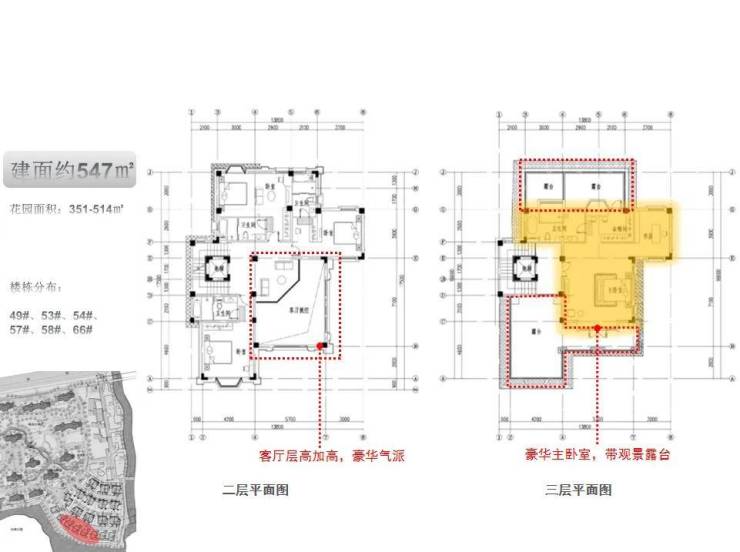 三楼:636户型两个套房设计,南侧超级豪华大套房带大露台。
