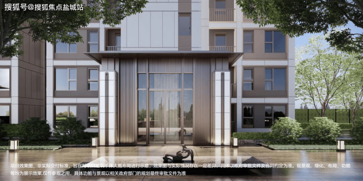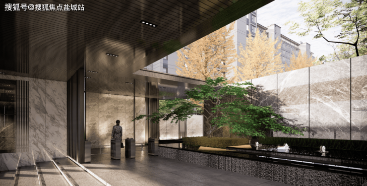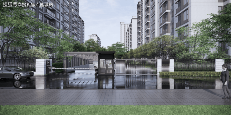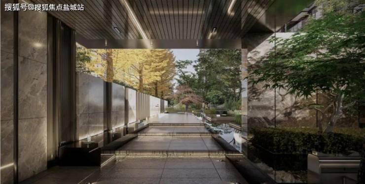 社区大门完全区分人行、车行入口,人行入口采用石材与玻璃搭配设计,大气恢弘!门厅景观水院精致高级,入户仪式感满满!