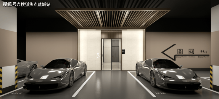 车行入口也设计了保安门岗,业主驾车入库安全有保障!车库地下入户大堂也是设计感十足!