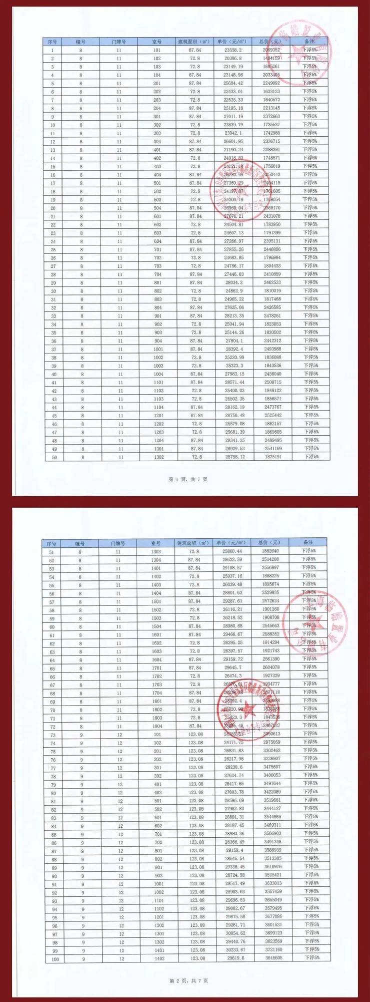 项目一房一价表