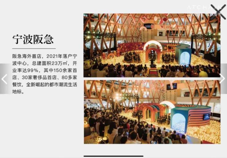 宁波中心项目三期为阪急百货,位于项目的东侧,与塔楼直接联通。在这里,办公与生活的时间成本降低至最低。日本的阪急百货梅田总店作为世界顶级购物旗舰之一,与美国古德曼、法国老佛爷、英国哈罗德等齐名。宁波阪急是日本阪急阪神入住中国大陆的唯一一家直营店,有着“打造为亚洲最成功的商业旗舰”伟大抱负。