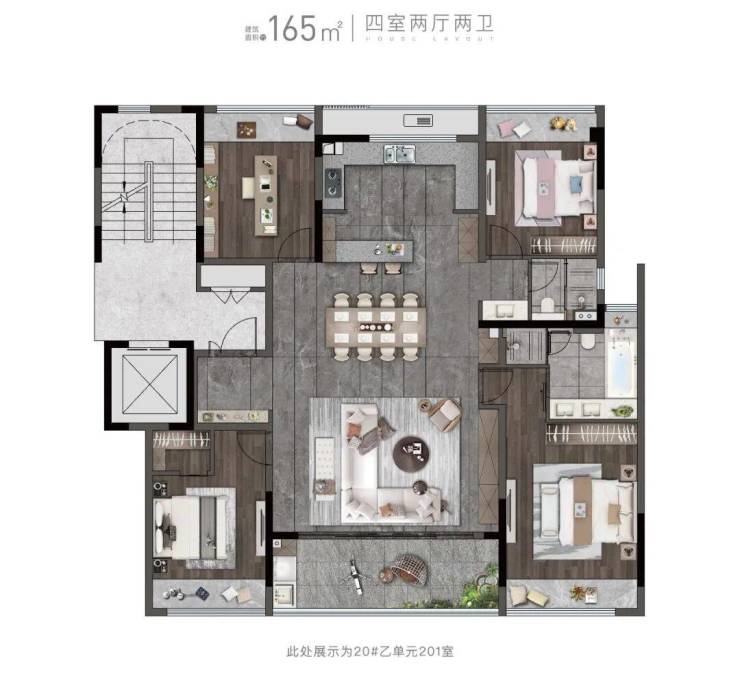 洋房:主力户型为建面约165㎡,采用四叶草户型设计,空间布局较为紧凑,部分户型存在动线交叉问题。