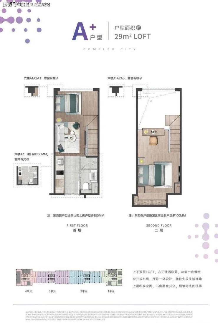 【楼层说明】地下1-2楼和地上1-2楼商业,3楼设备阳台,4-5楼平层公寓,6-12楼4.19米LOFT。