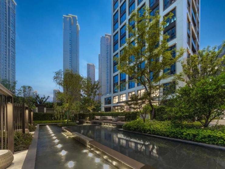 金镶玉灵感让建筑立面充满了珍宝般的贵气和韵味。建筑以“白色铝板镶嵌香槟金色的窗框线条”为特色,巧妙地将现代风格与传统文化相结合,将精致华美的元素融入到建筑的灵魂中。