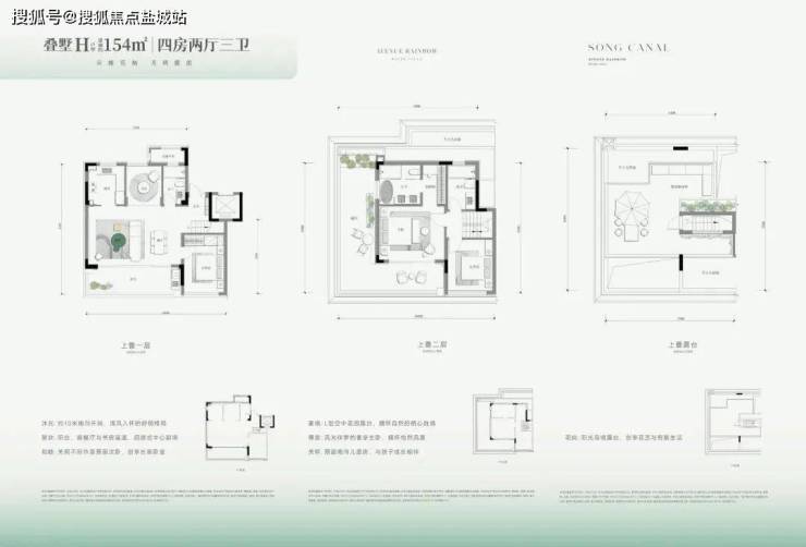 上叠大光厅、L型空间花园露台、屋顶岛境露台。