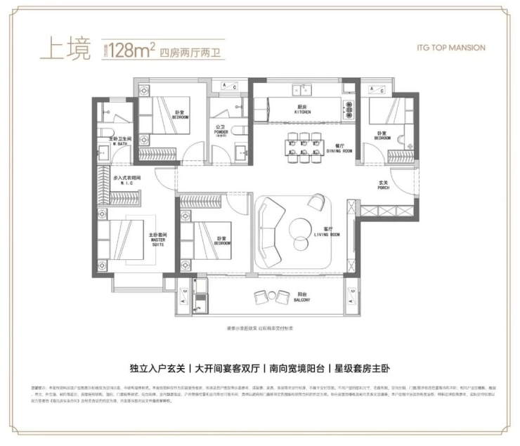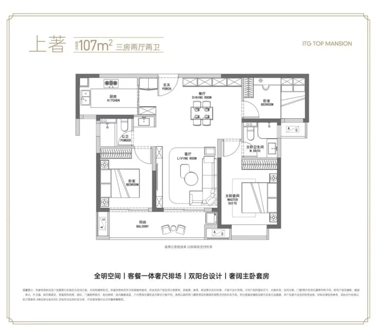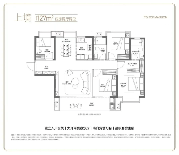 4、项目主推户型为建面约107-143㎡的三至四房,户型方正、空间朗阔,兼具功能性与舒适性。