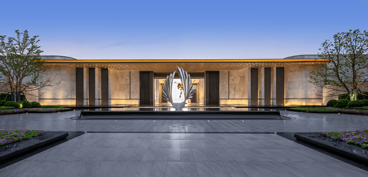 2、打造实景展示区,做了目前区域内唯一一个门外高配置的“三进式”归家礼序,以及在豪宅项目才能看得到的奢阔门庭+酒店式环岛落客区+雕塑水景+奢石景墙+贝壳纹璀璨灯顶配置,其呈现出来的质感令来访的购房者惊叹。