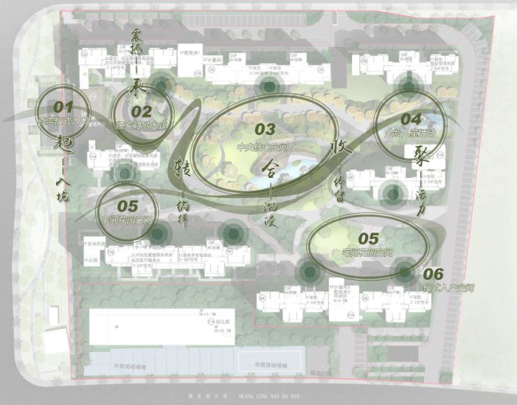 3、项目为围合式布局,让渡出更多的中庭空间做园林,最终呈现出最大楼间距约95米的“X型”中庭园林。